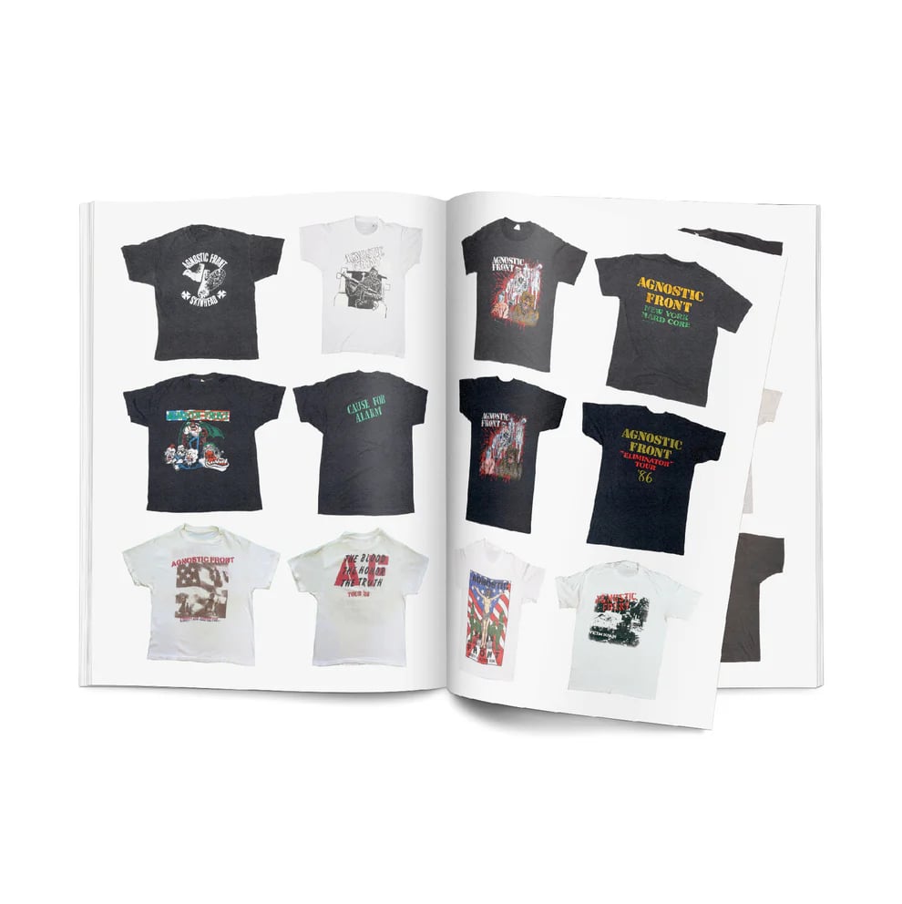 A BOOK BY UNTERWELT BOOKS FEATURING OVER 400 VINTAGE AMERICAN HARDCORE T-SHIRTS FROM THE PERSONAL COLLECTION OF RYAN BANNAHAN